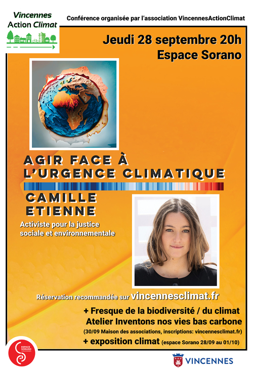 Du 27 au 30 septembre à l'espace Sorano (16, rue Charles-Pathé): Comprendre les grands enjeux environnementaux et socio-économiques liés au changement climatique.